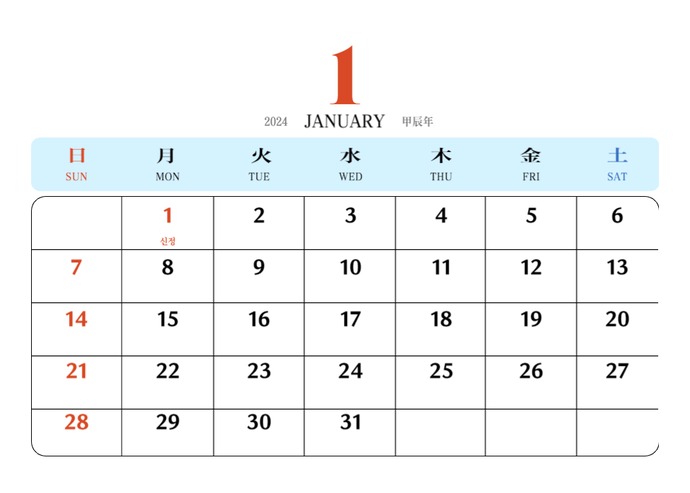 ◆ 2024년 1월 공휴일은 1월 1일 신정입니다. 2023년 12월 30일(토)부터 2024년 1월 1일(월)까지 3일 연휴를 보낼 수 있습니다.