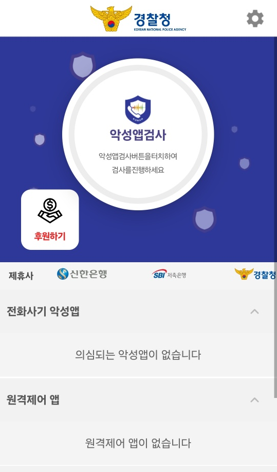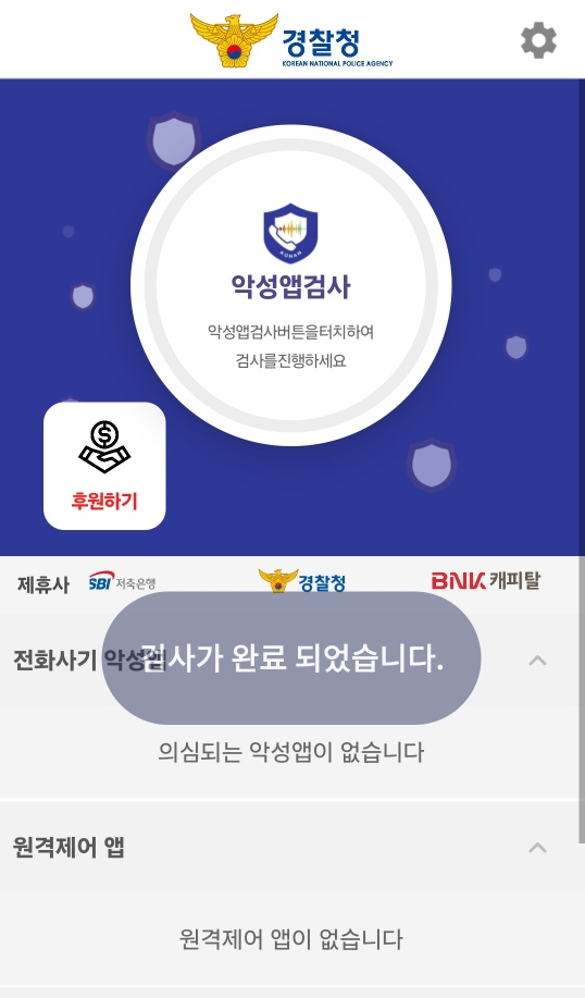 "악성앱 검사"를 클릭하여 악성앱검사를 실행합니다.