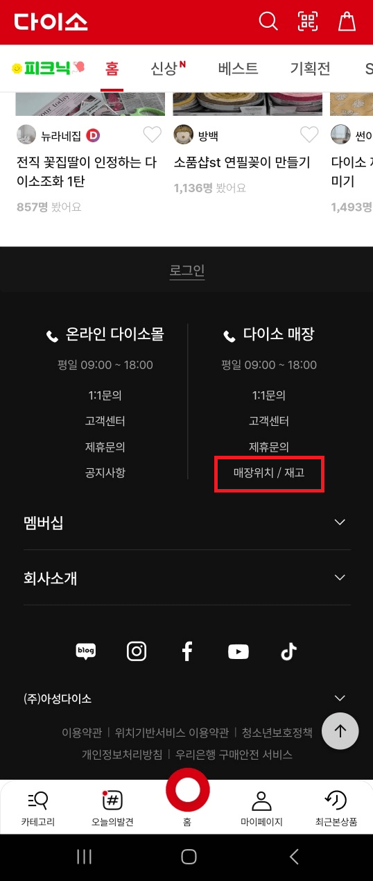 ③ 매장정보별 영업시간을 확인 확인 후 다이소매장에 방문합니다.