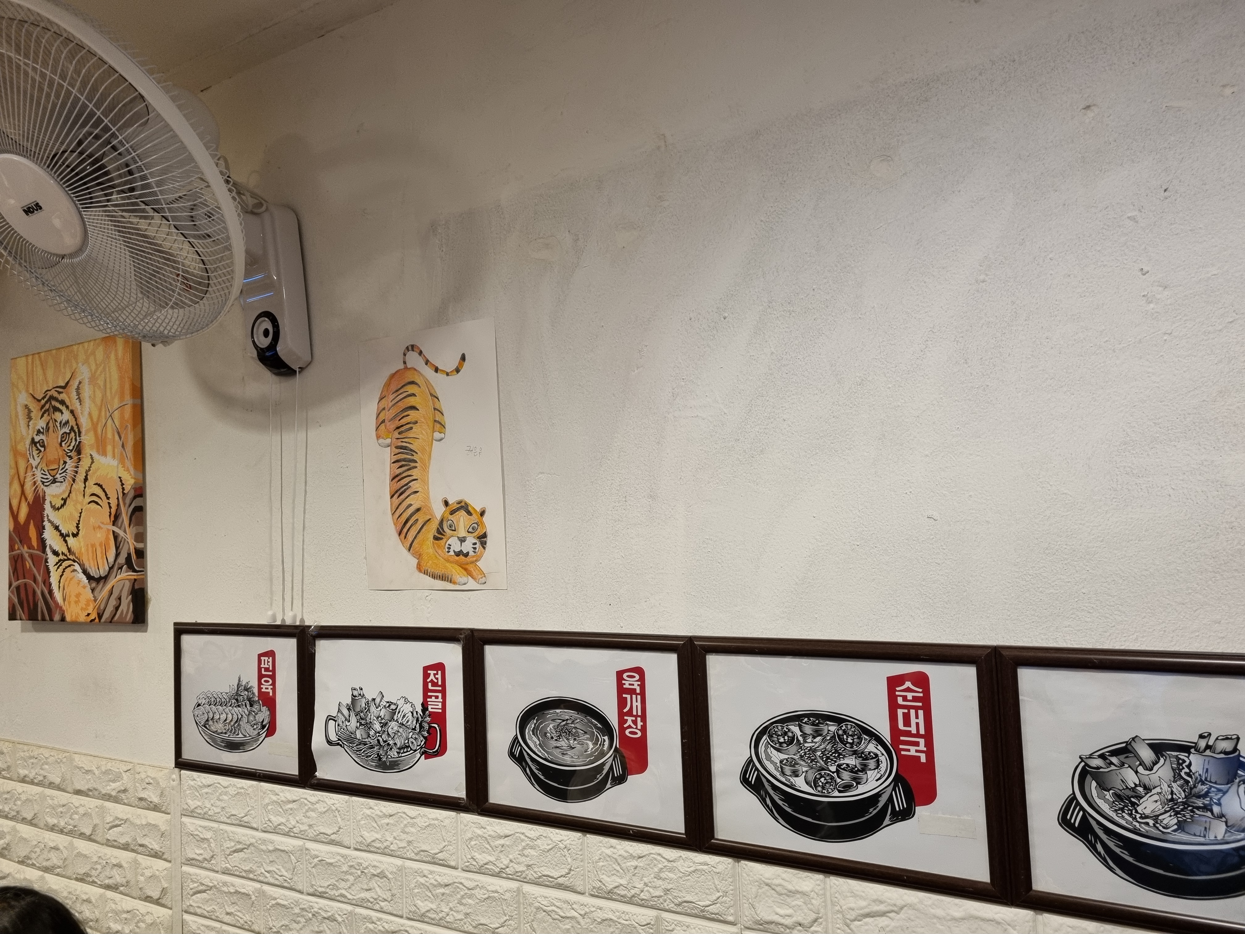 식당이름이 호랭이다 보니 식당 벽에 호랑이 사진이 있는데 왜 호랑이로 이름을 변경했는지는 모르겠지만