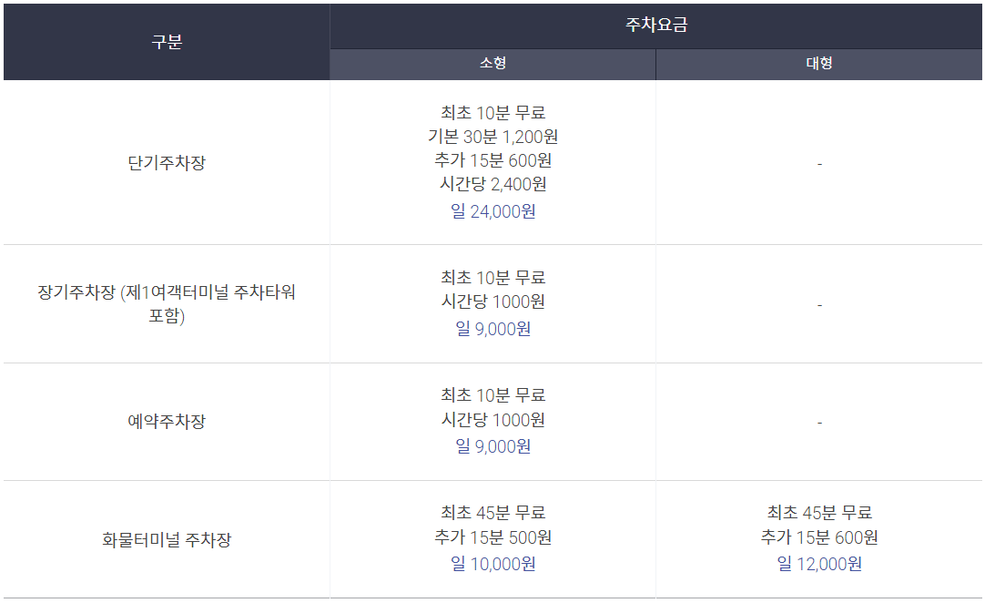 인천공항 주차요금 및 감면조건
