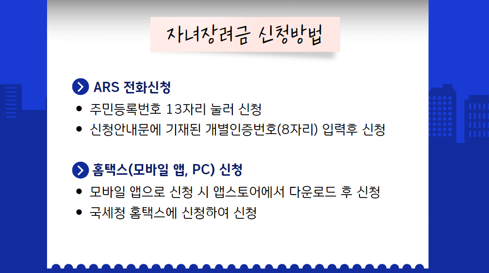 자녀장려금 신청방법 (ARS / 홈택스)