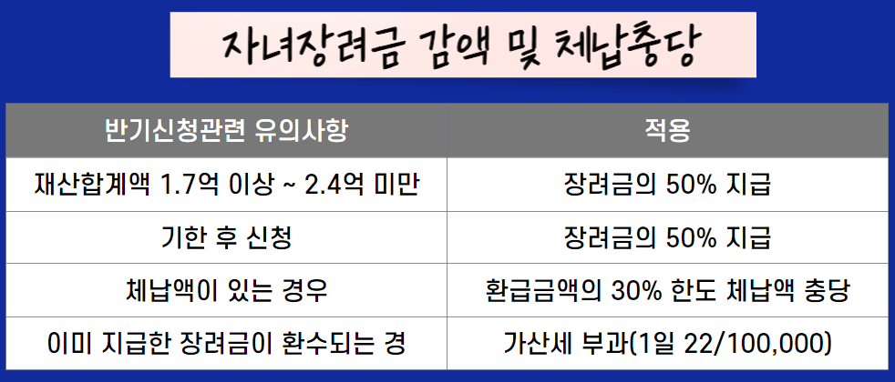 자녀장려금 감액 및 체납충당 기준