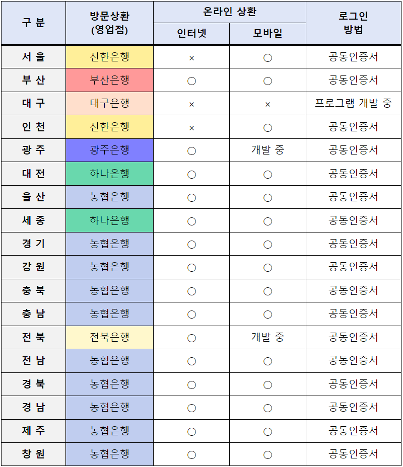 ※ 은행 리스트는 2022년 2월 행정안전부 보도자료 기준으로 현재는 대부분 지역의 은행영업점에서 인터넷 및 모바일로 신청이 가능합니다.