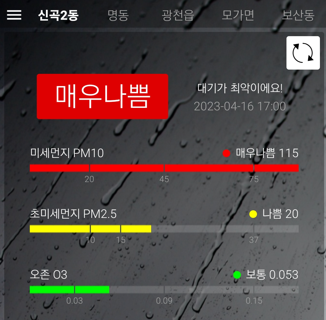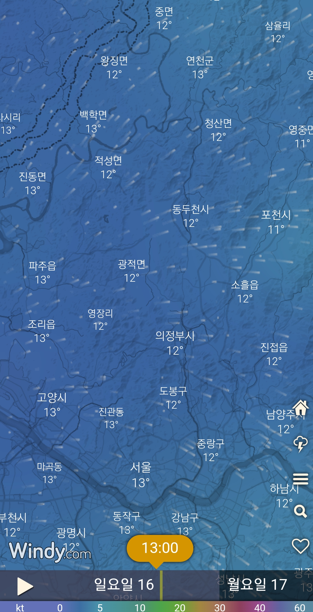 서울로 갈 것인지 동두천으로 갈 것인지는 윈디 앱을 보고 보통 결정한다.