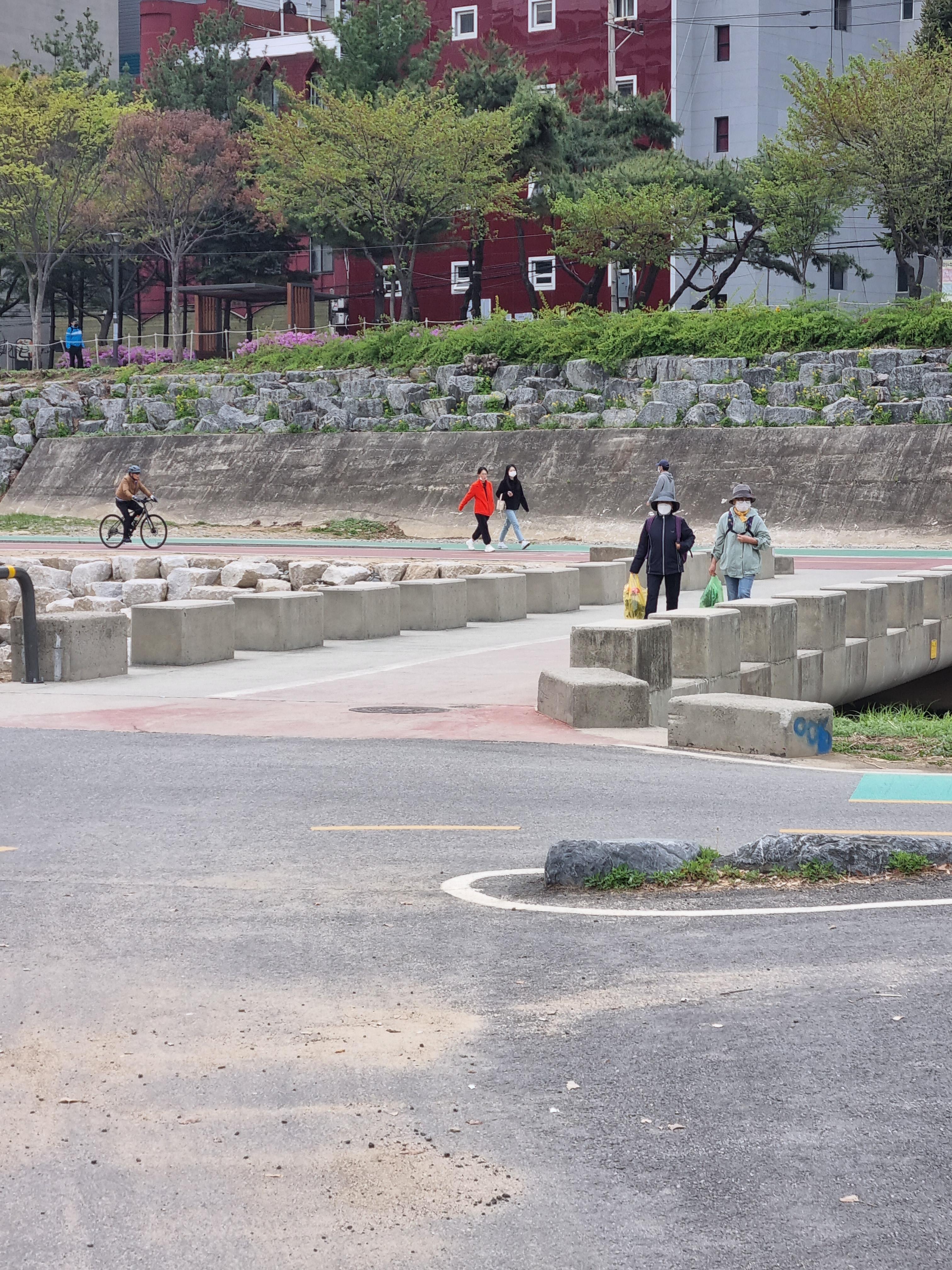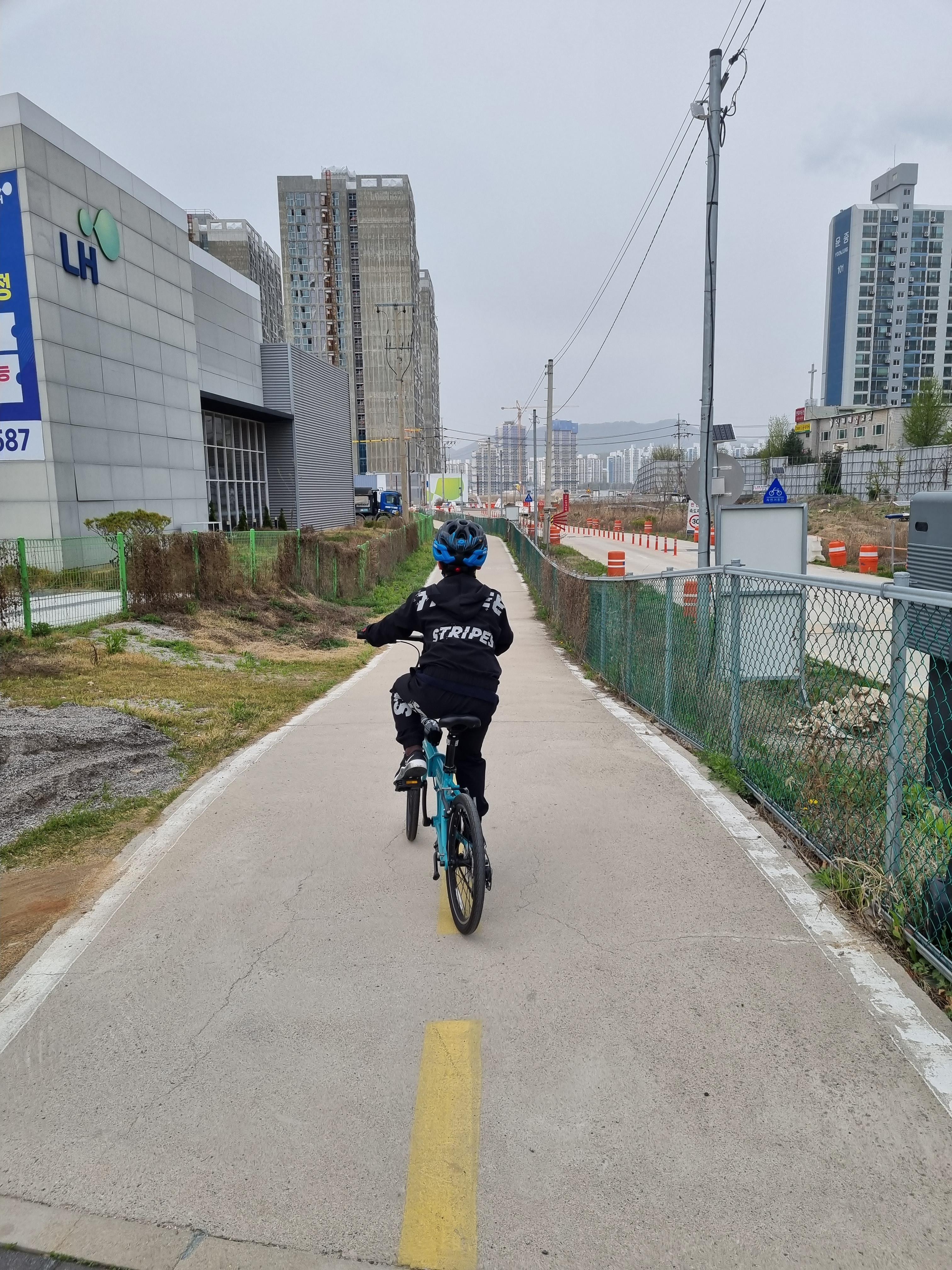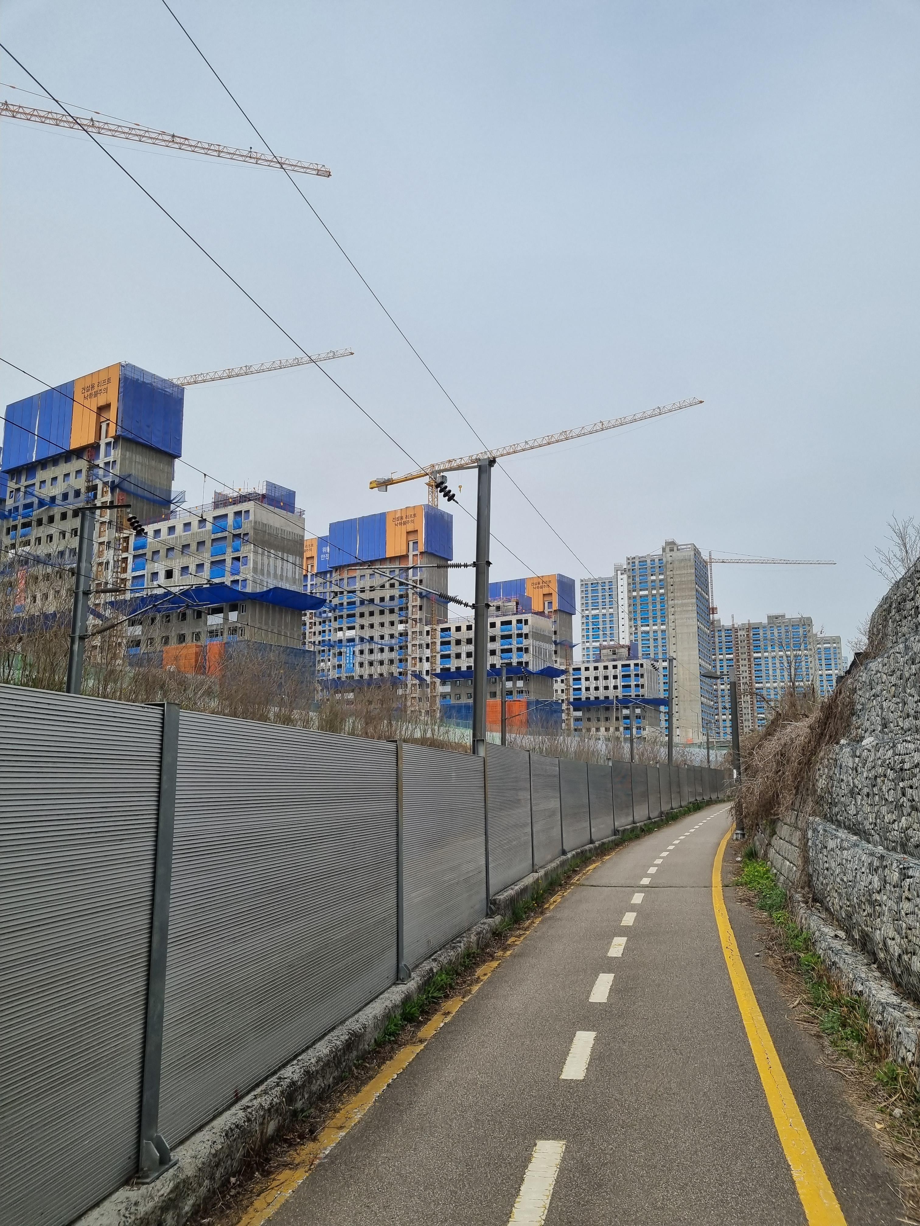 대부분 공사장 뷰이고 자전거 도로 컨디션도 그리 좋지는 못하다