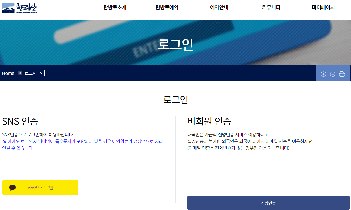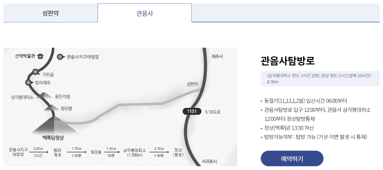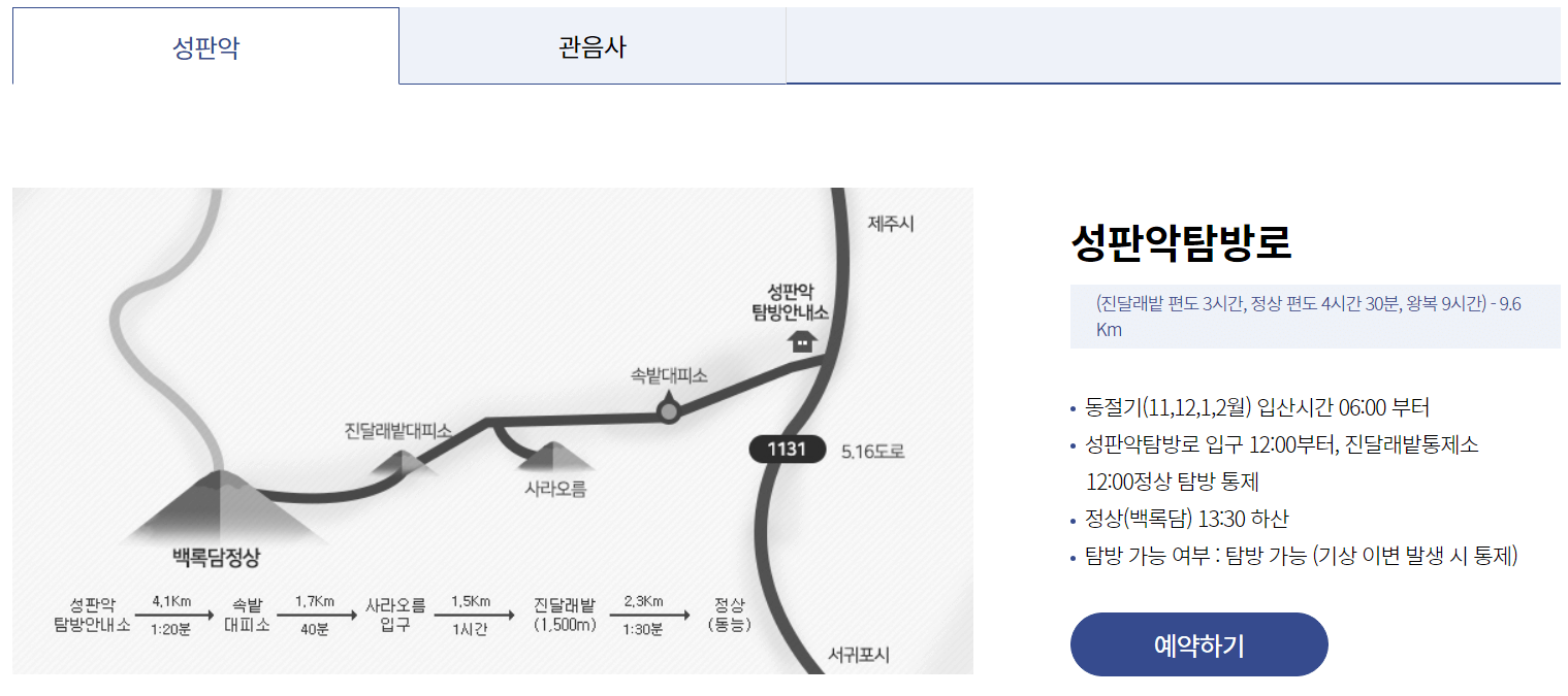 한라산 탐방예약 방법