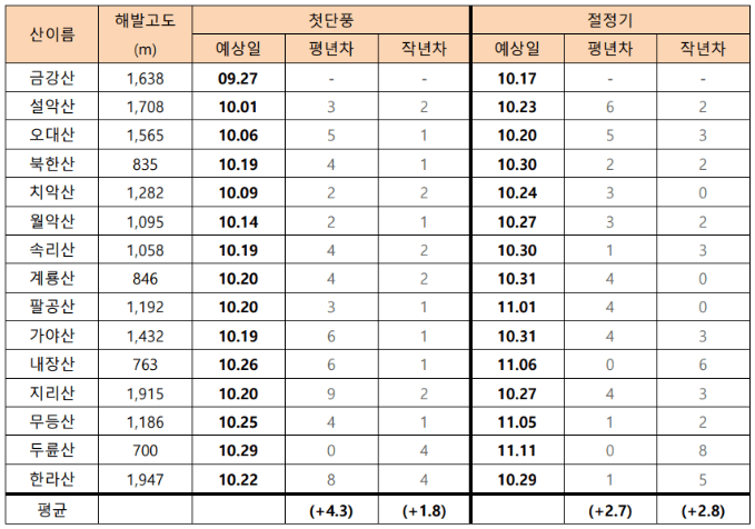 ① 2023년 첫 단풍 예상시기