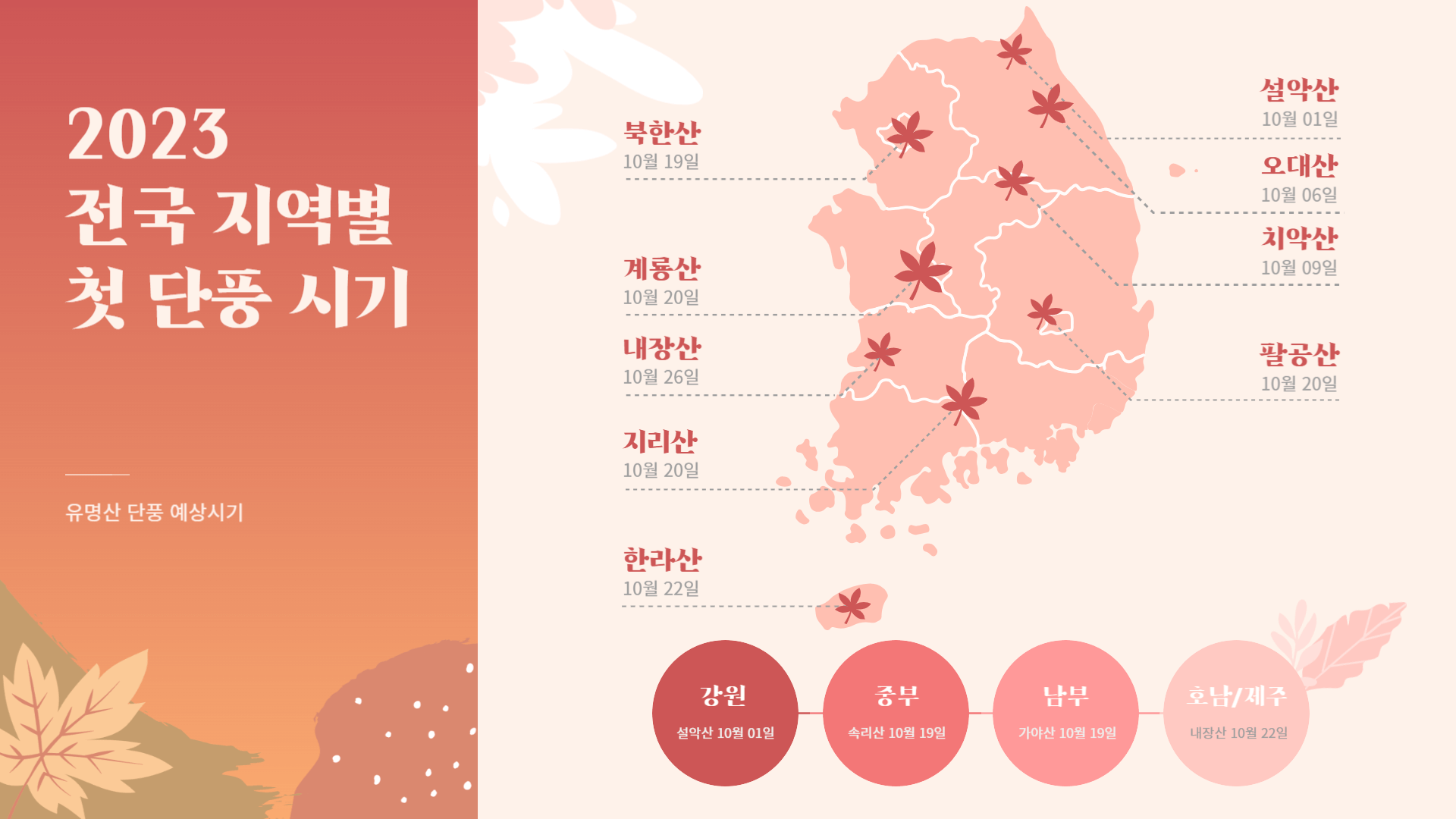 2023년 전국 전국 지역별 단풍시기